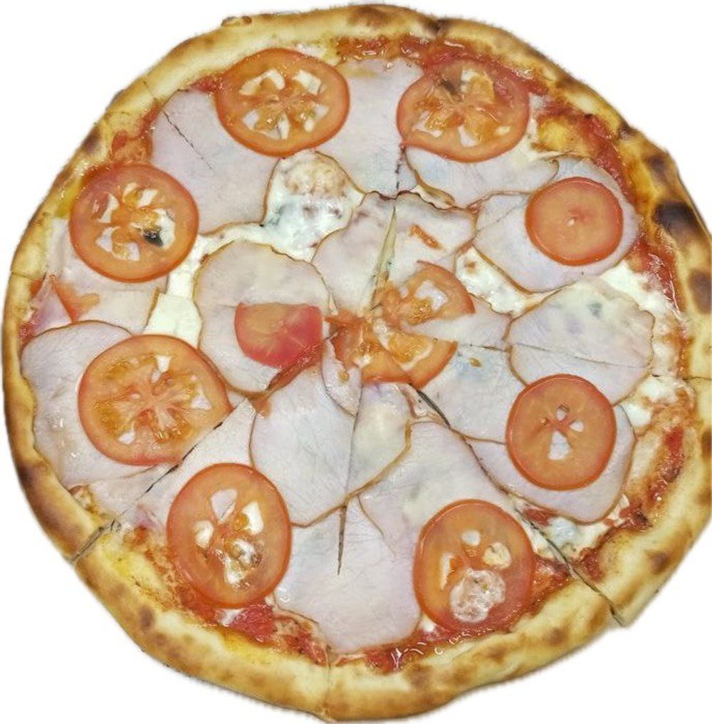 Пицца "Верона" 33 см. Тонкое тесто на оливковом масле, балык свиной сырокопченый, шампиньоны, помидоры, моцарелла, соус из томатов в собственном соку. Все продукты натуральные, соления собственного производства, без добавок, БЗМЖ.